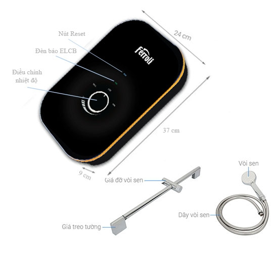 Máy nước nóng trực tiếp Ferroli Amore GSN 4500W kèm vòi sen