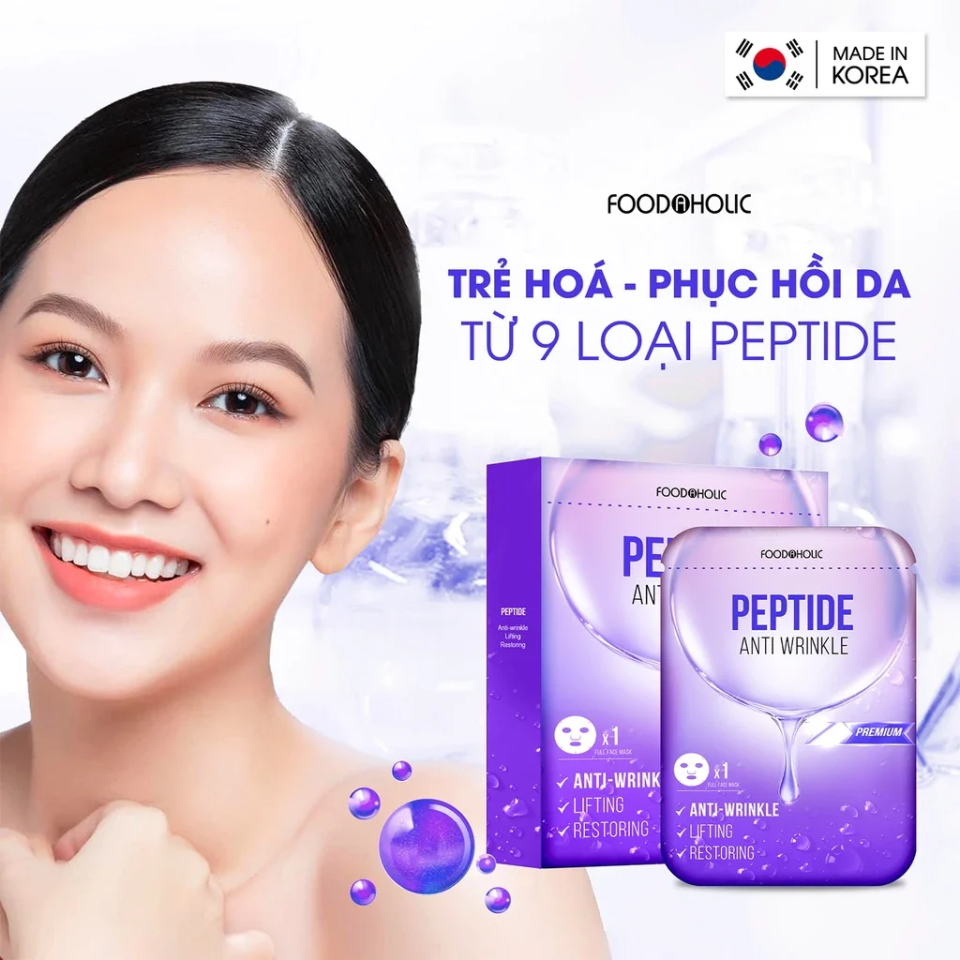(Hàng nhập khẩu) Combo 10 miếng mặt nạ trẻ hóa da Foodaholic Peptide Anti Wrinkle Mask